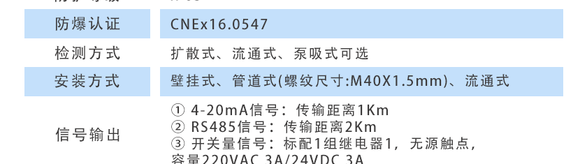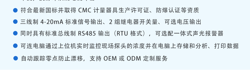 ①4-20mA信號傳輸距離1Km ②RS485信號傳輸距離2Km