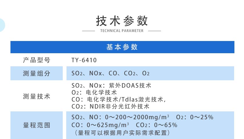 SO2、NOx:紫外DOAS技術;O2:電化學技術;CO:電化學技術/Tdlas激光技術;CO2:NDIR非分光紅外技術 |