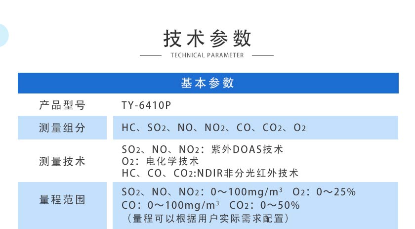 SO2、NO:0~200~2000mg/m3;O2:0~25%;CO:0~625mg/m3;CO2:0~65%(量程可以根據(jù)用戶實際需求配置) |