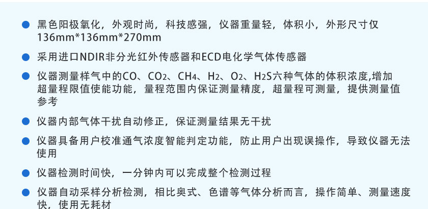 CO、CO2、CH4:NDIR非分光紅外;H2:TCD熱導(dǎo);O2、H2S:ECD電化學(xué) |