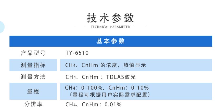 CH4:0-100%,CnHm:0-10%(量程可根據用戶實際需求配置) |