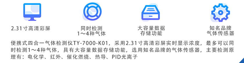 便攜式四合一氣體檢測儀 TY-7000-K01
