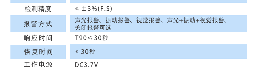 聲光報警、振動報警、視覺報警、聲光+振動+視覺報警、關閉報警可選