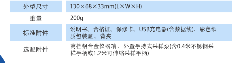 擴散式測量,可選配采樣手柄(外置手持式采樣泵)