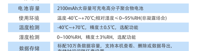 標配10萬條數據容量,支持本機查看、刪除或數據導出,存儲時間間隔任意設置