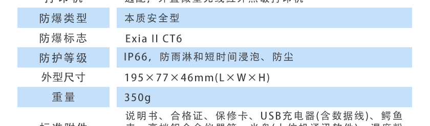 說明書、合格證、保修卡、USB充電器(含數據線)、高檔鋁合金儀器箱、光盤(上位機通訊軟件)、鱷魚夾、濕度粉塵過濾器5個 |