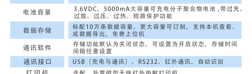 標配10萬條數據容量,更大容量可訂制,支持本機查看、或數據導出,免費上位機 |