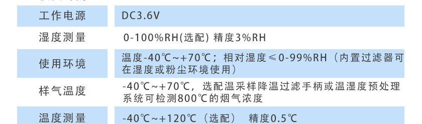-40℃~+70℃ ,選配高溫采樣降溫過濾手柄或高溫高濕度預處理系統可檢測 800℃ 的煙氣濃度 |