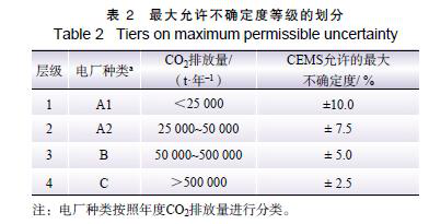 歐盟對CEMS 需達到的數(shù)據(jù)質(zhì)量要求做了明確規(guī)定, 選取不確定度作為反映數(shù)據(jù)質(zhì)量的指標,同時根據(jù)電廠年度CO2 排放量對數(shù)據(jù)質(zhì)量分級管理。