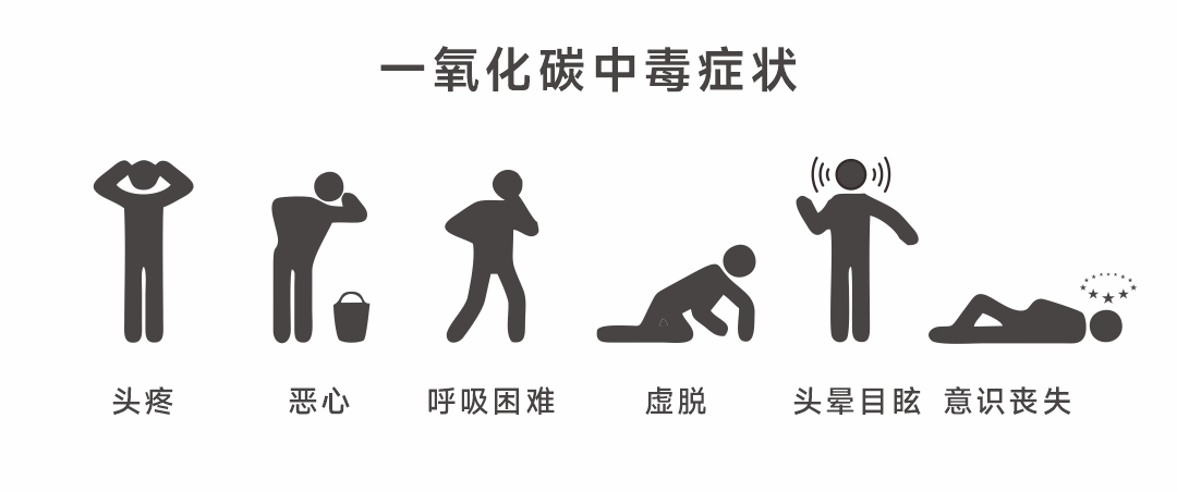 4)當出現一氧化碳中毒反應時,應迅速撤離。若發現有人中毒,及時將中毒者轉移到通風良好處,并解開其領扣,使其保持呼吸通暢,同時注意保暖。如出現意識模糊、昏迷等癥狀,急救同時撥打"120”,盡早送醫治療。