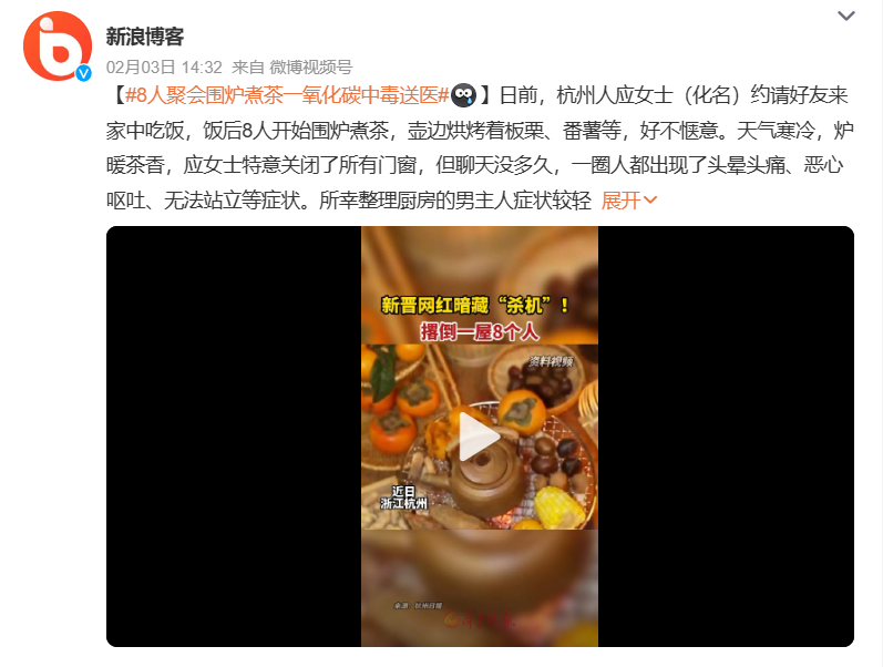 圍爐煮茶體驗慢生活?還需警惕一氧化碳中毒