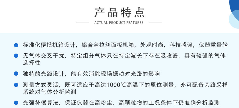 用國際先進的TDLAS激光技術,主要用于測量各種氣體中的HF、HCL、O2、CO、CO2、H2O、O2、NH3、CH4?等氣體體積濃度及熱值。