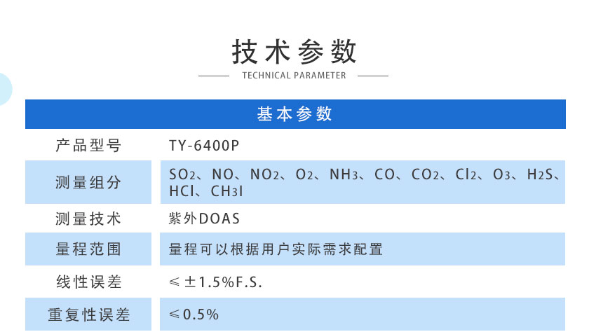 針對國內外環保在線監測、工業在線分析自主研發的氣體分析產品。該分析儀基于紫外差分吸收光譜技術(DOAS)和化學計量學算法(PLS),能夠測量SO2、NO、NO2、O2、NH3、CO、CO2、Cl2、O3、H2S、HCl、CH3I等氣體濃度,具有測量精度高、可靠性強、運行成本低、響應時間快、量程跨度大、應用范圍廣等特點。